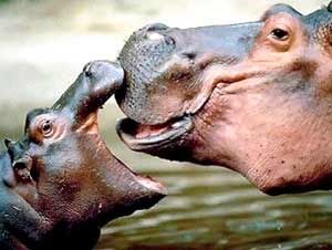 It all started with my daughter's pre-school fascination with hippos. She just took a liking to the creatures, got all kinds of fun attention for this quirky fixation, and we were off and running. The more I learn about hippos, it turns out, the more I share DD's affection for them. What speed (18 to 30 mph on land), endurance (they walk up to 6 miles per day foraging), devoted mothering (baby-wearing - it's not just for primates!), ferocity (ever fought off a Nile crocodile?) and adaptation to their environment (they secrete their own sunscreen). . . .